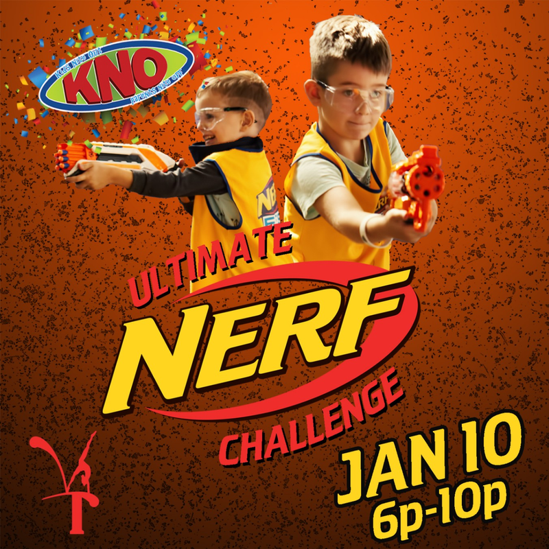 Ready, Aim, Register! Let's kick off the new year with an Ultimate Nerf Challenge Kids Nite Out! Kids Night Out includes four hours of fun with gymnastics, pizza, craft, games and plenty of fun!