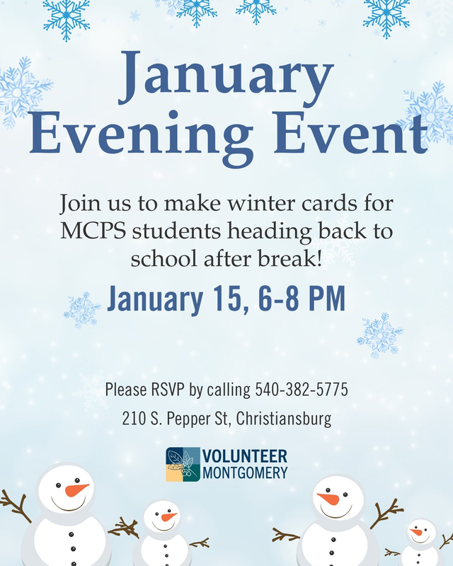 We will be decorating cards for Montgomery County Public Schools students heading back to school after winter break. We will be hosting this event at Volunteer Montgomery.