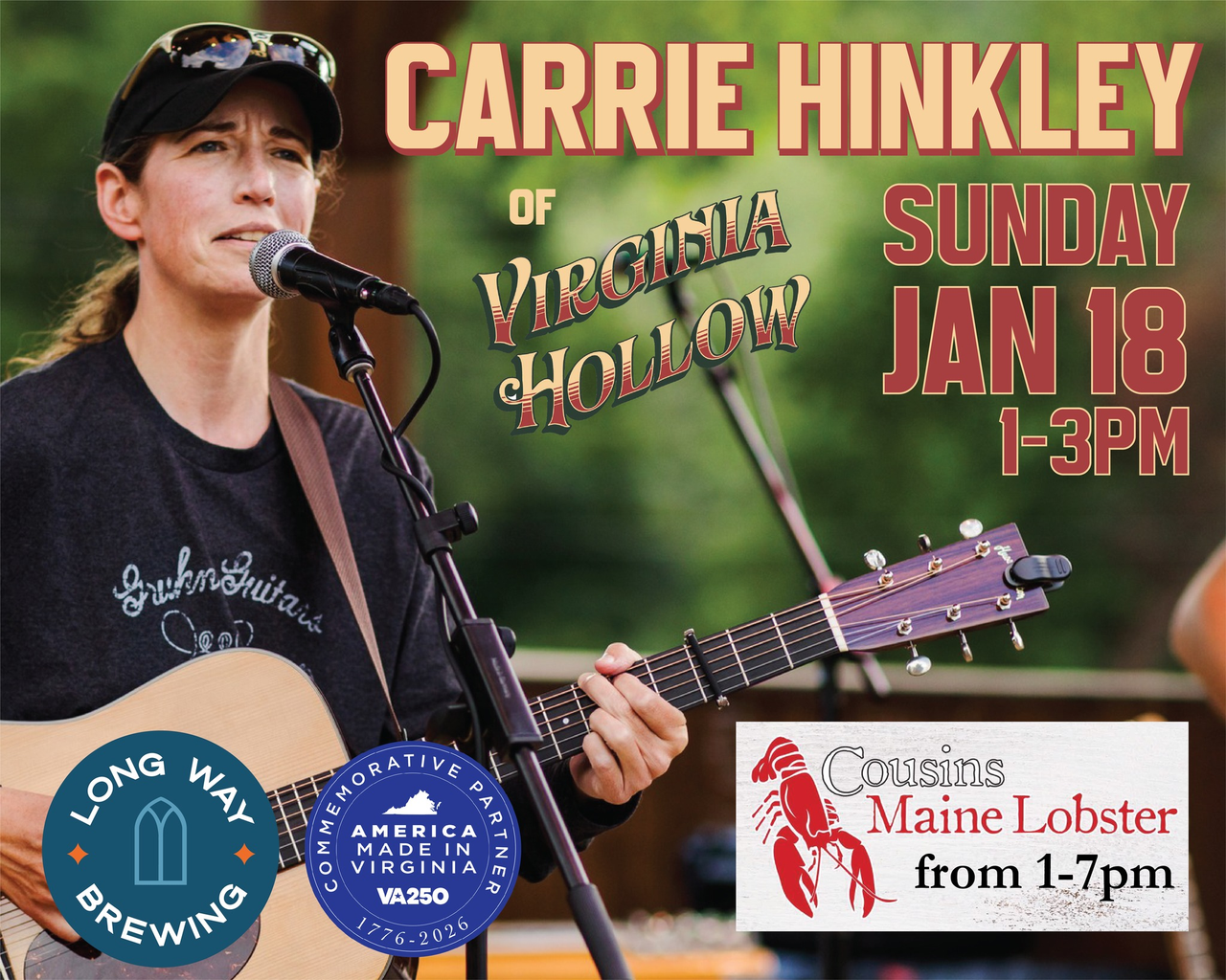 Warm up with live music from Carrie Hinkley of the local band Virginia Hollow. Enjoy an easygoing afternoon that pairs perfectly with a cozy taproom, a good beer, and nowhere else you need to be.