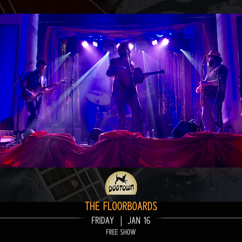 Dogtown Roadhouse presents The Floorboards in concert on Friday, January 16, 2026.
