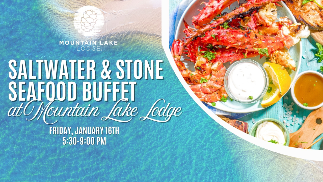 Mountain Lake Lodge presents their Saltwater & Stone Seafood Buffet on Friday, January 16, 2026.