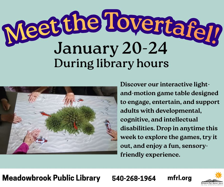 The Meadowbrook Public Library presents the all day program "Meet the Tovertafel" starting on Tuesday, January 20, 2026 and available during library hours through Saturday, January 24, 2026.