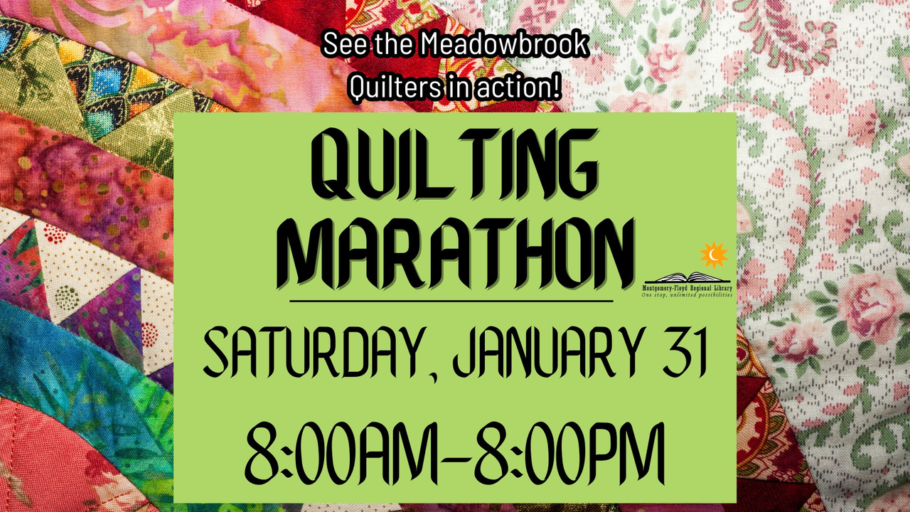 The Meadowbrook Public Library presents Quilting Marathon on Saturday, January 31, 2026.