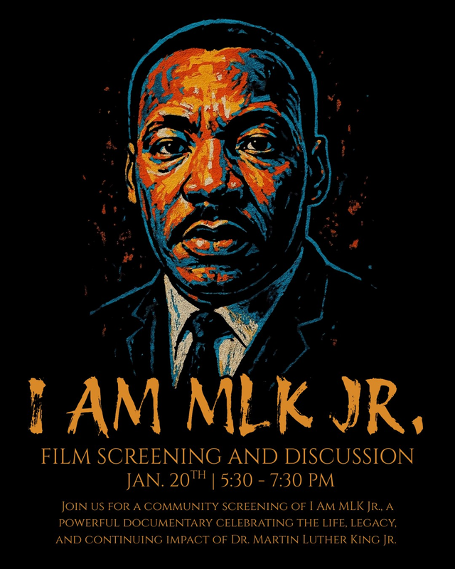 Join us for a community screening of "I Am MLK Jr.", a powerful documentary celebrating the life, legacy, and continuing impact of Dr. Martin Luther King, Jr. Through interviews and historic footage, the film highlights his leadership, vision, and enduring influence on movements for justice today.