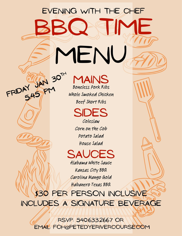 The Pete Dye River Course presents an Evening with The Chef titled "BBQ Time" on Friday, January 30, 2026.