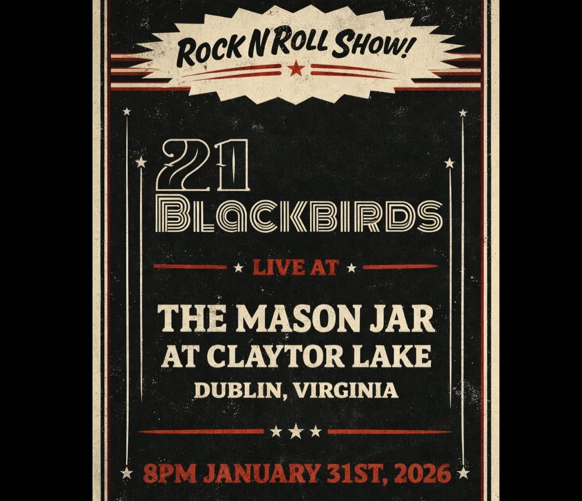 The Mason Jar at Claytor Lake presents 21 Blackbirds in concert on Saturday, January 31, 2026.