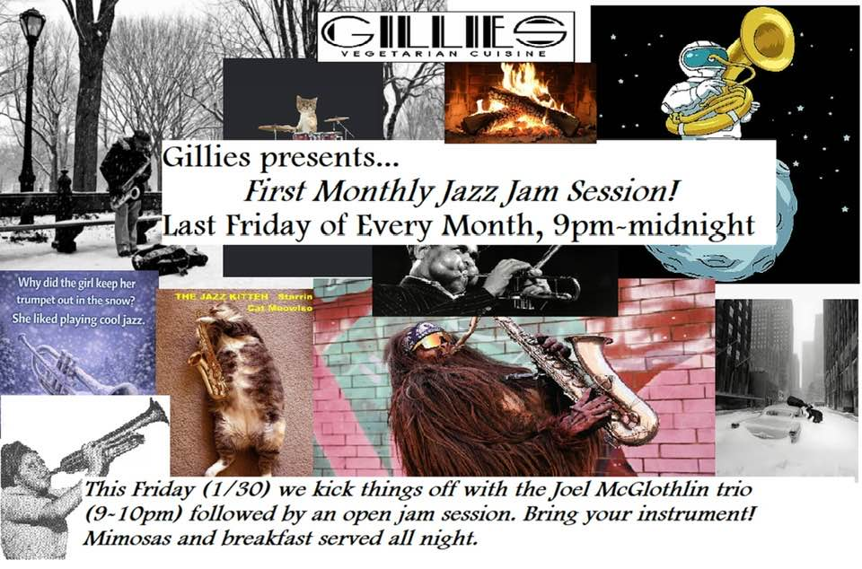 Gillie's presents their First Monthly Jazz Jam Session with the Joel McGlothlin Trio and Open Jam Session on Friday, January 30, 2026.
