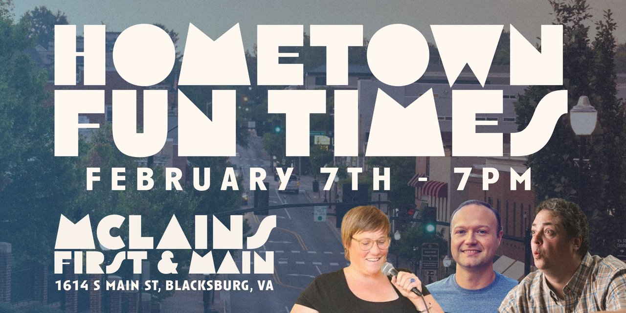 Comedians Gone Rogue presents a Stand Up Comedy Show titled "Hometown Fun Times" on Saturday, February 7, 2026 at McClain's at First & Main in Blacksburg, VA.