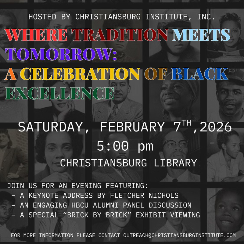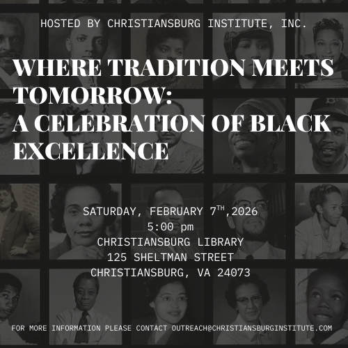 Christiansburg Institute, Inc. presents the program titled "Where Tradition Meets Tomorrow: A Celebration Of Black Excellence" on Saturday, February 7, 2026 at the Christiansburg Library.