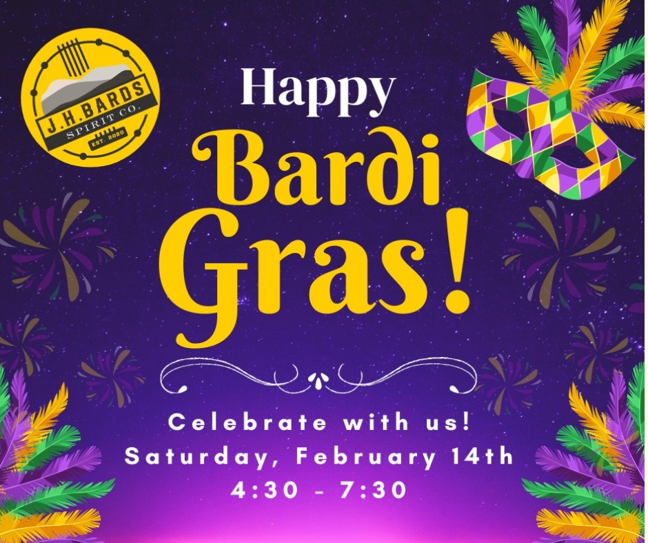 J.H Bards Spirit Co. presents their Happy Bardi Gras event on Saturday, February 14, 2026.