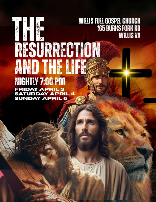 The Willis Full Gospel Church, under the leadership and direction of Myra Cox, presents "The Resurrection and the Life". This presentation will explore the transformative narrative of Jesus Christ, a story that has profoundly influenced the course of human history and has the ability to touch and change every heart. "The Resurrection and the Life" this Easter drama will have some of the most significant moments from the life, death, and resurrection of Jesus, highlighting the profound impact of his message.