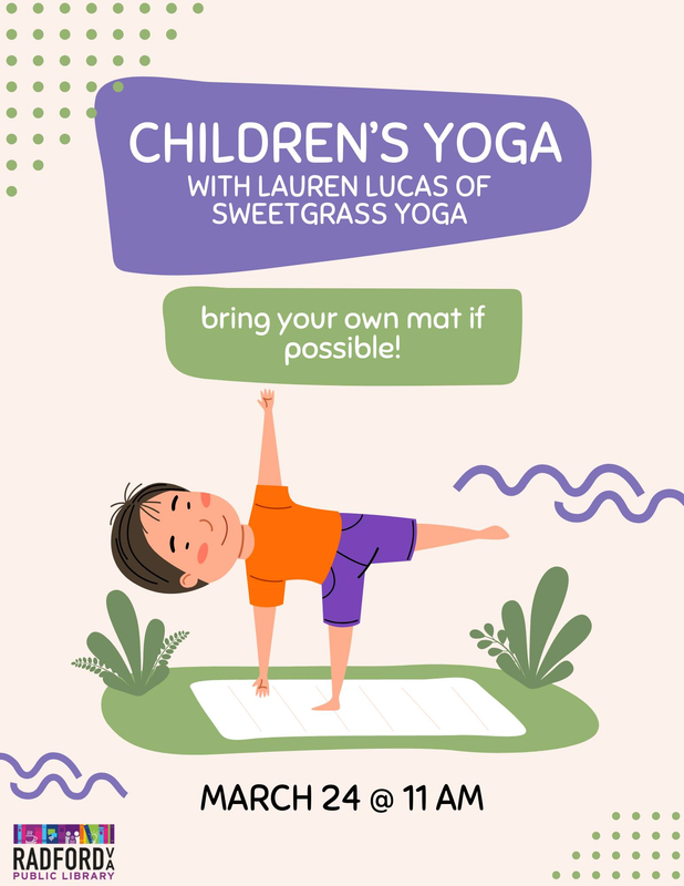 The Radford Public Library presents March Children's Yoga Class on Tuesday, March 24, 2026.