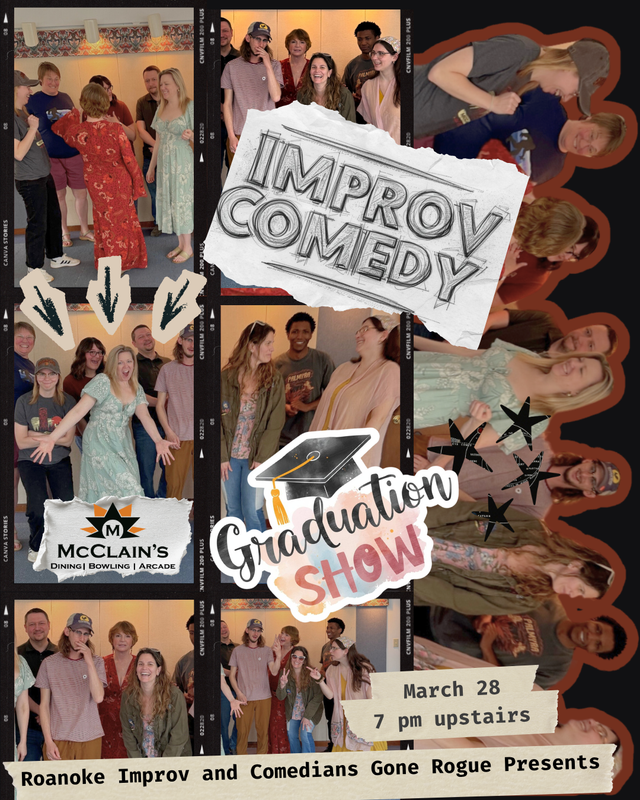 Roanoke Improv and Comedians Gone Rogue presents the Improv Comedy Graduation Show upstairs in the event space at McClain's at First & Main on Saturday, March 28, 2026.