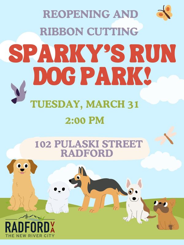 Sparky's Run, the Radford Dog Park, presents their Reopening and Ribbon Cutting on Tuesday, March 31, 2026.
