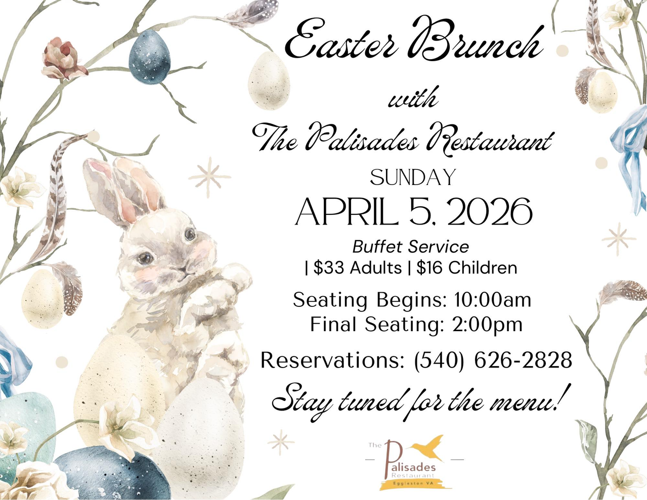 The Palisades Restaurant presents 2026 Easter Brunch on Sunday, April 5, 2026.
