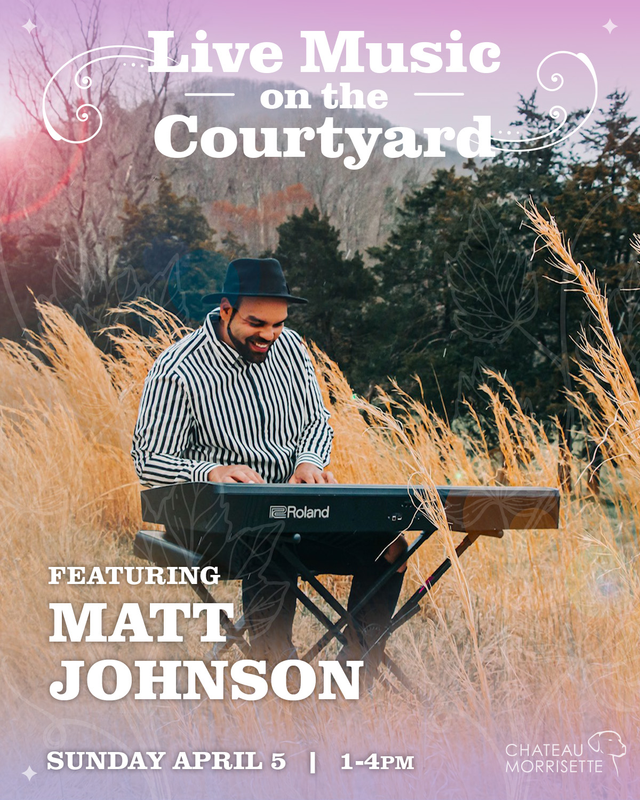 Join us this Easter Sunday as Matt Johnson will be performing live R&B and soul music. Enjoy award-winning wines and breathtaking springtime views from the Blue Ridge at Chateau Morrisette.