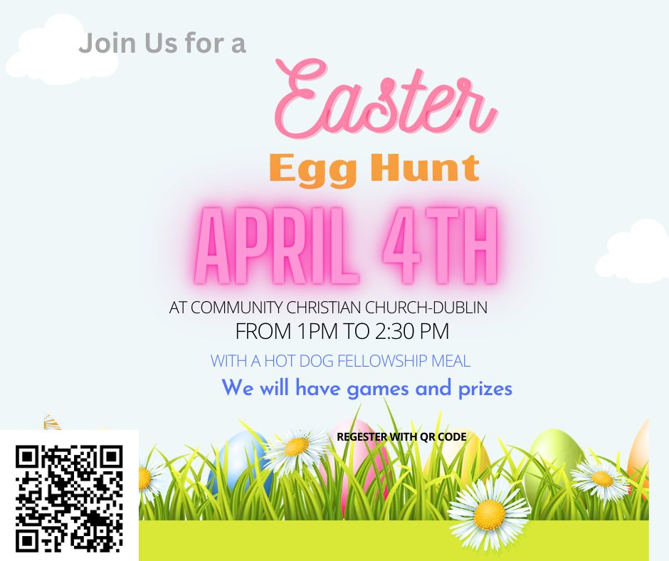 Join us for an Easter Egg Hunt along with games, prizes and a Hot Dog Fellowship Meal for everyone.