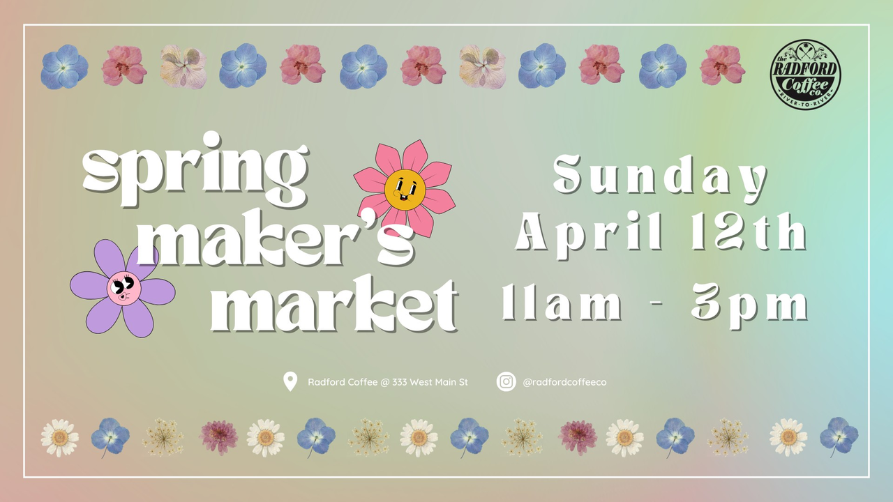 Radford Coffee Company presents their Annual Spring Maker's Market on Sunday, April 12, 2026.