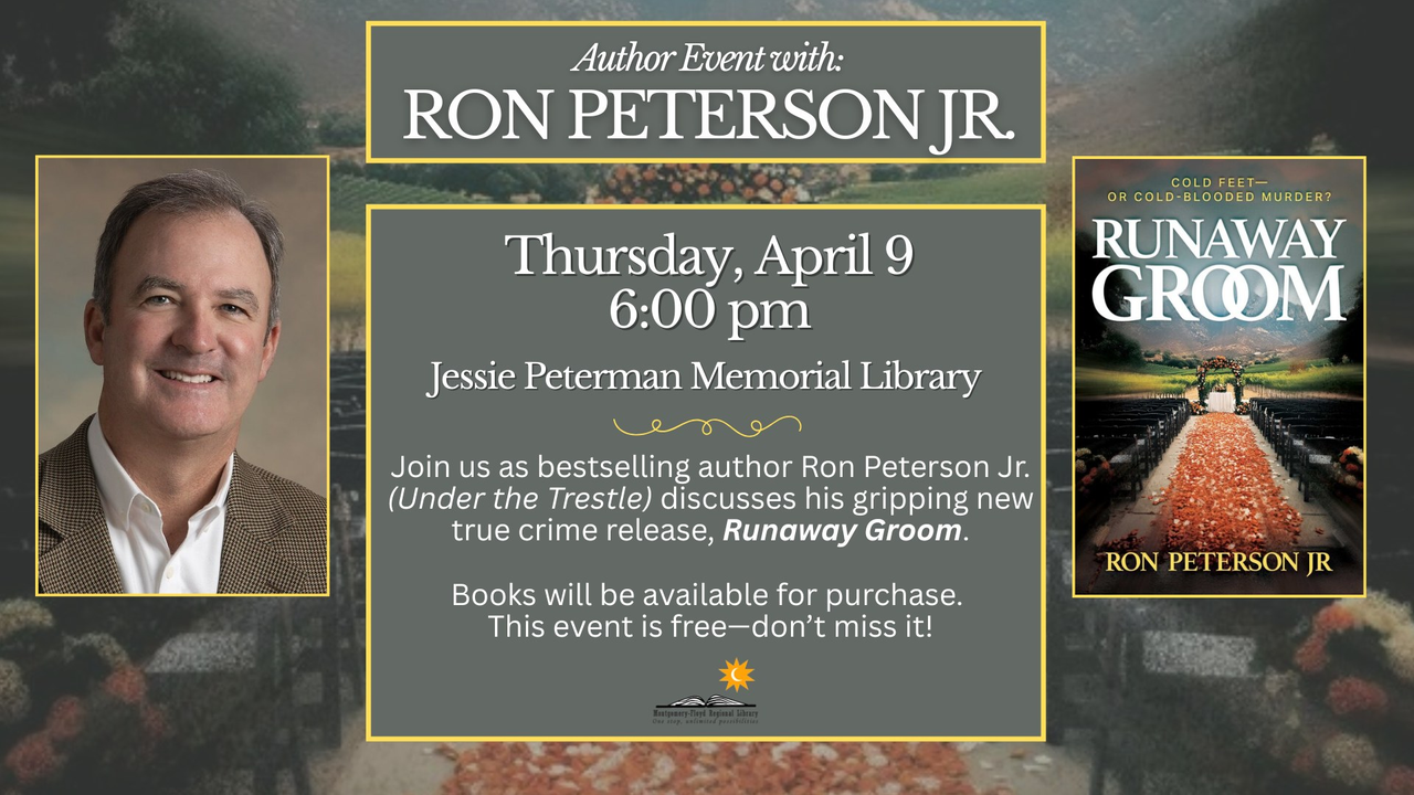 The Jessie Peterman Library presents Author Event with Ron Peterson Jr. on Thursday, April 9, 2026.
