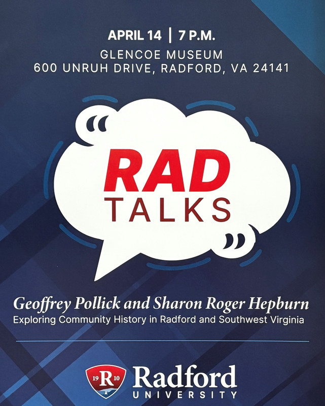 Radford University continues their RAD Talks with the event "Exploring Community History in Radford and Southwest Virginia" on Tuesday, April 14, 2026 at Glencoe Mansion, Museum & Gallery.