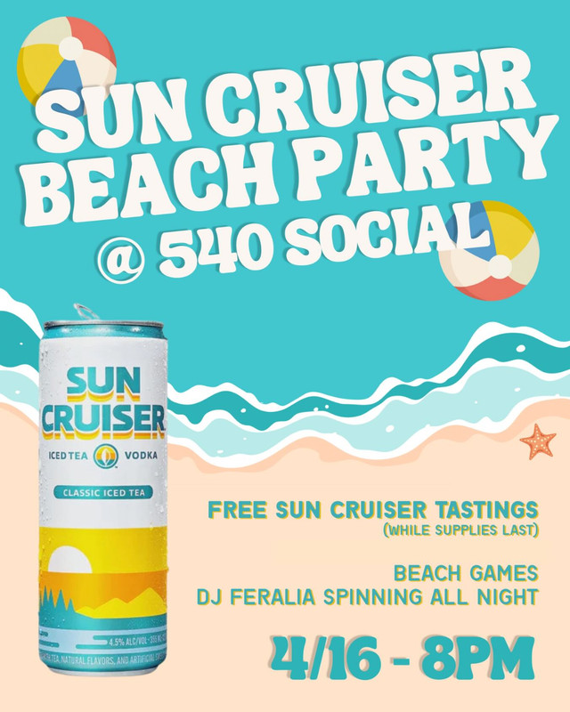 540 Social (Blacksburg, VA) presents a Sun Cruiser Beach Party on Thursday, April 23, 2026.