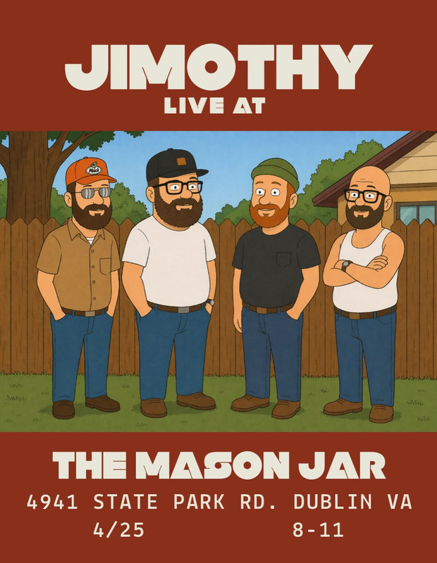 The Mason Jar at Claytor Lake presents Jimothy in concert on Saturday, April 25, 2026.