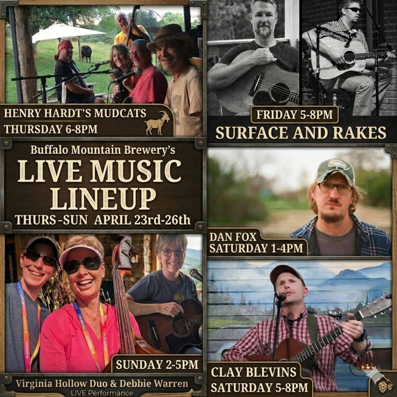 Buffalo Mountain Brewery presents Dan Fox and Clay Blevins in concert on Saturday, April 25, 2026.