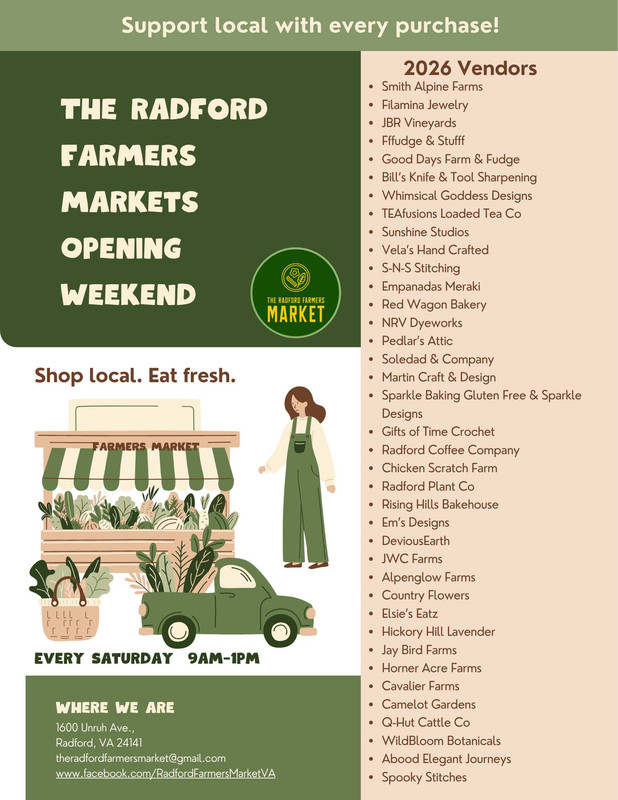 The Radford Farmers Market kicks off their 2026 season on Saturday, April 25, 2026.
