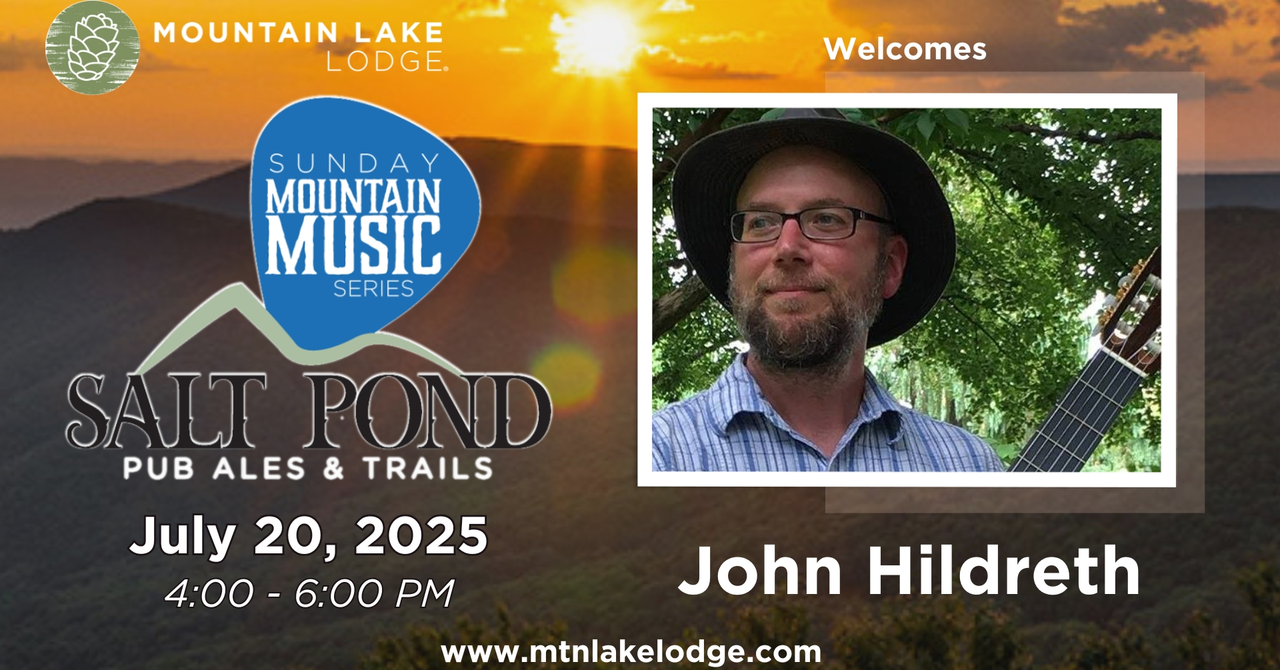 Mountain Lake Lodge presents John Hildreth in concert as part of their 2025 Summer Mountain Music Series on Sunday, July 20, 2025 at the Salt Pond Pub.