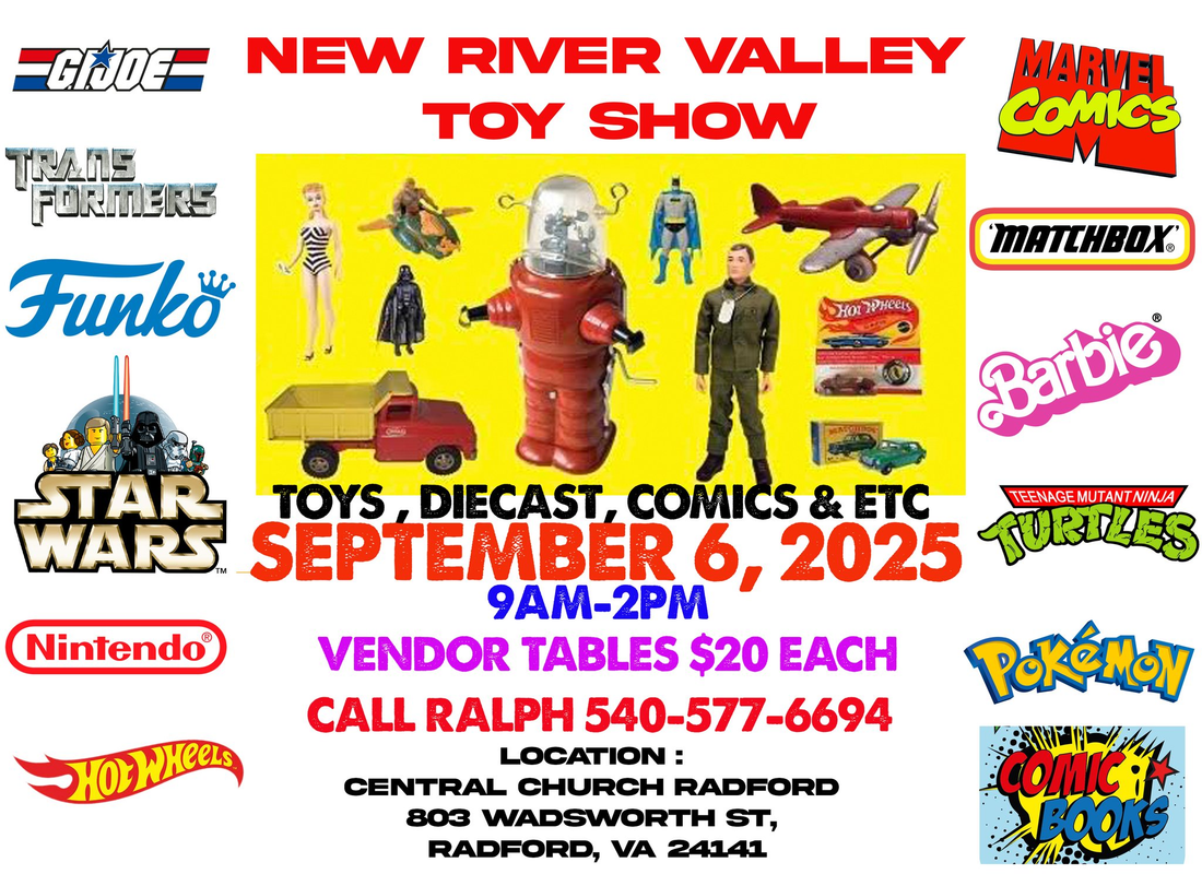 Now, Then & Forever Collectibles presents their November NRV Diecast & Toy Show on Saturday, December 13, 2025 at Central Church in Radford, VA.