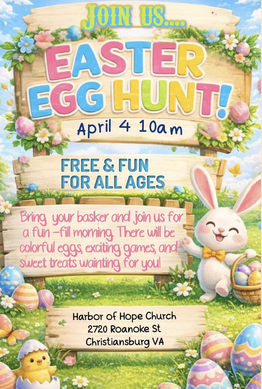 Harbor of Hope Church in Christiansburg, VA presents their Annual Easter Egg Hunt on Saturday, April 4, 2026.