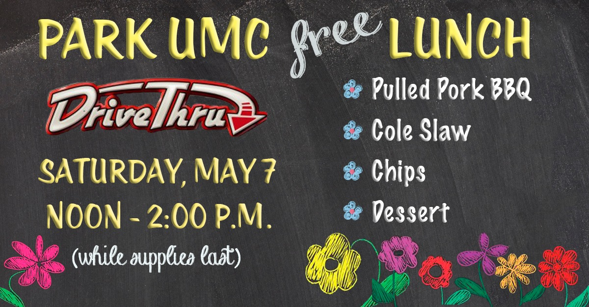 Park United Methodist Church presents a Free Drive-Thru Lunch with Pulled Pork BBQ on Saturday, May 7, 2022.
