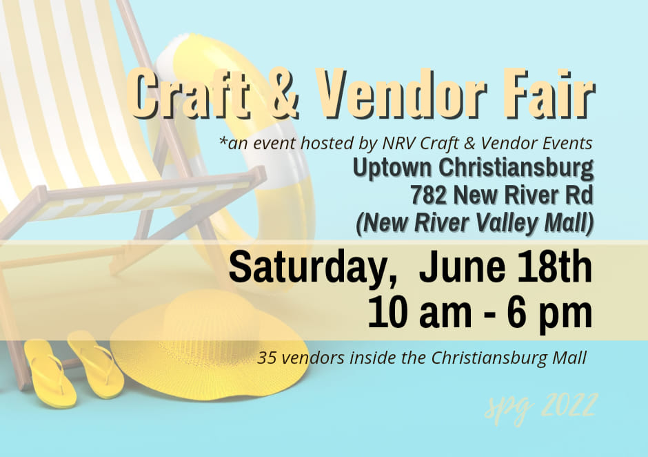 NRV Craft & Vendor Events hosts a Craft & Vendor Fair on Saturday, April 2, 2022 at Uptown Christiansburg (New River Valley Mall).