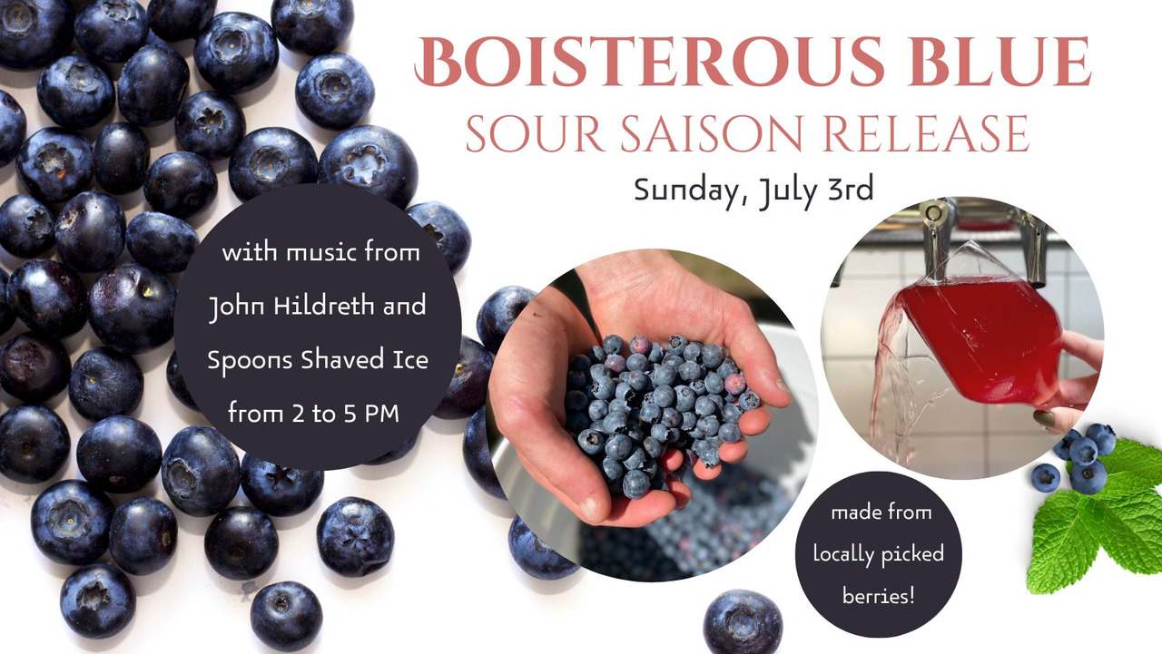 Moon Hollow Brewing presents their 3rd Annual Boisterous Blue Sour Saison Release with Live Music from John Hildreth on Sunday, July 3, 2022.