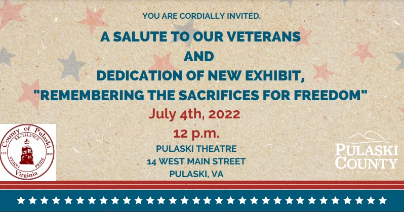 Pulaski County presents "A Salute To Our Veterans" and the dedication of the new exhibit "Remembering The Sacrifices For Freedom" on Monday, July 4, 2022 at the Pulaski Theatre.