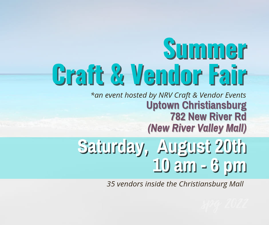 NRV Craft & Vendor Events hosts a Craft & Vendor Fair on Saturday, August 20, 2022 at Uptown Christiansburg (New River Valley Mall).