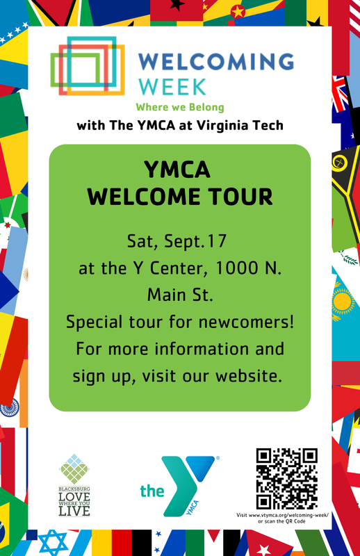 The YMCA at Virginia Tech continues their Welcoming Week events with the Welcome Tour on Saturday, September 17, 2022 at the YMCA at Virginia Tech.