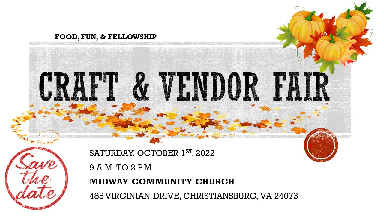 Midway Community Church in Christiansburg, VA presents their Craft & Vendor Fair on Saturday, October 1, 2022.