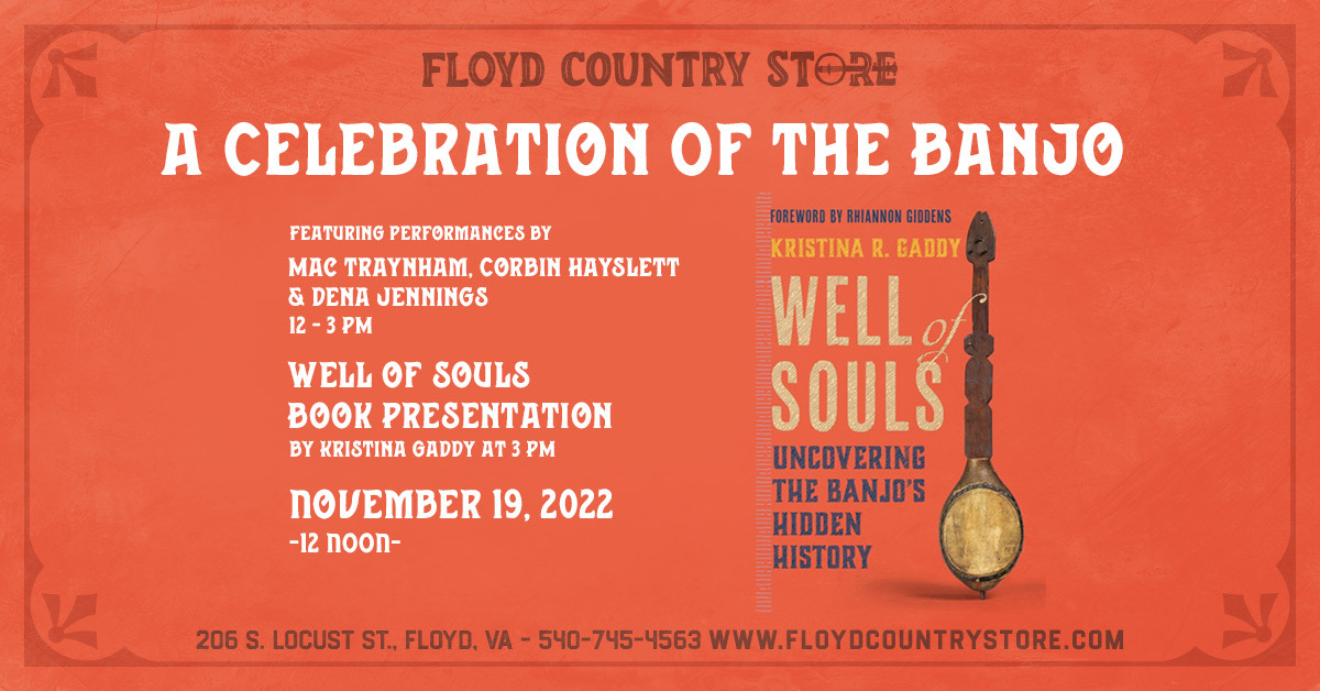 The Floyd Country Store presents A Celebration Of The Banjo with live music and the "Well Of Souls" book presentation on Saturday, November 19, 2022.