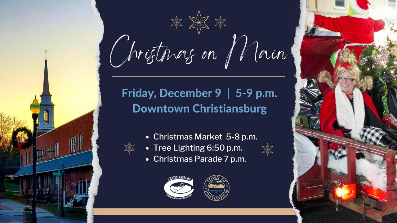 The Town of Christiansburg presents their annual Christmas on Main on Friday, December 9, 2022 at various locations in downtown Christiansburg, VA.