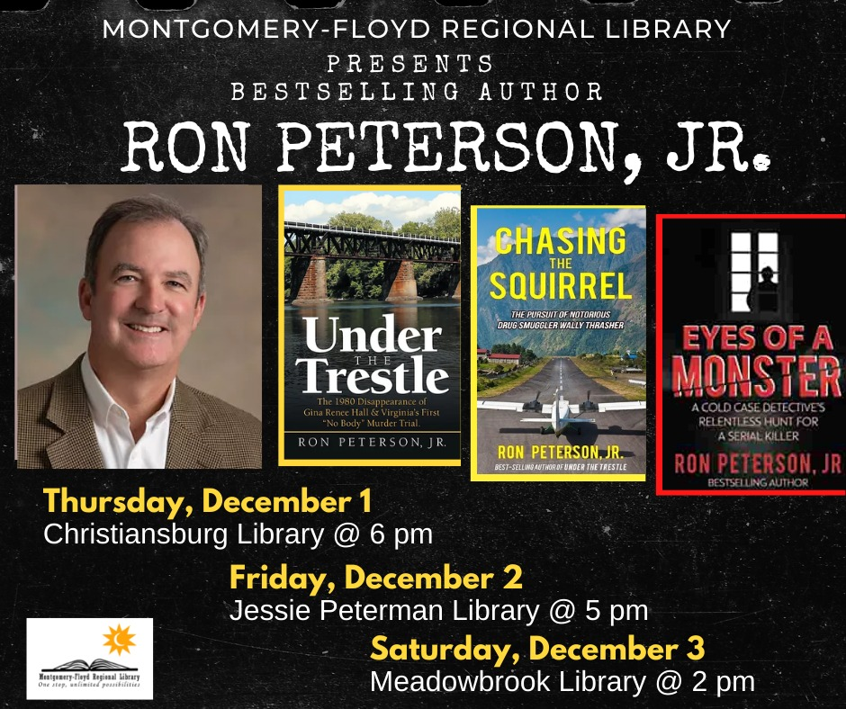 Peterson’s first book, "Under the Trestle" was selected as one of the Top 100 true crime books of all time and is currently in development with Mactavish Pictures as a documentary film or series. "Under the Trestle" is based on the local case of Radford University student Gina Renee Hall who disappeared in 1980. Stephen Epperly was later arrested and sentenced for her murder, making it Virginia’s first ever "no-body" murder trial.