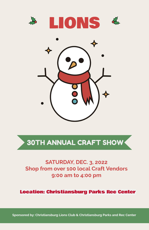 The Christiansburg Lions Club presents their 30th Annual Holiday Craft Show on Saturday, December 3, 2022 at the Christiansburg Recreation Center.