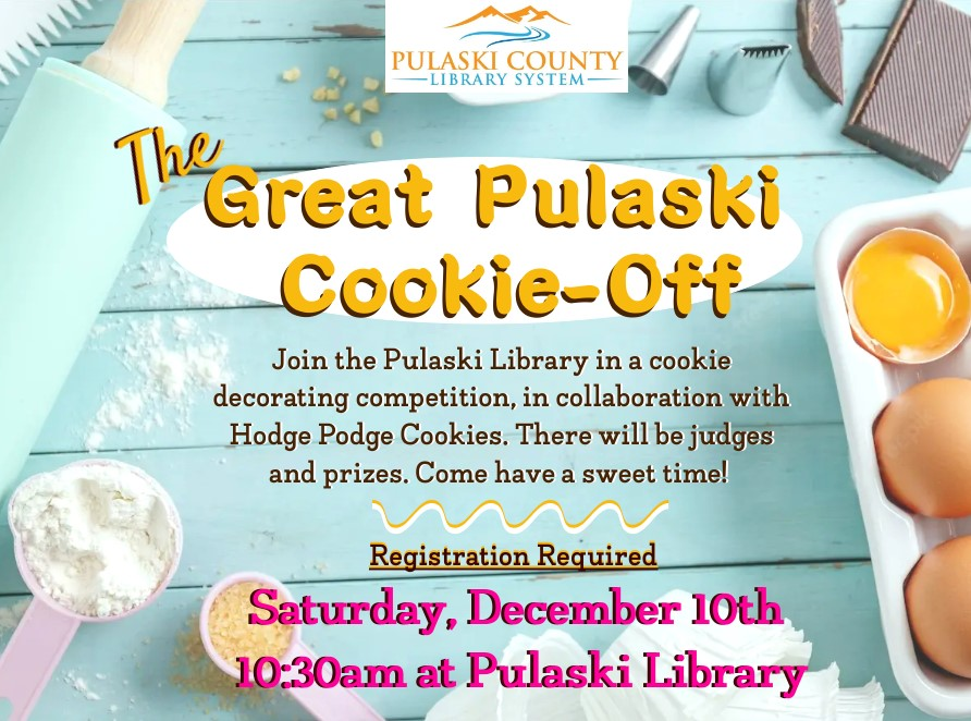 The Pulaski County Library presents The Great Pulaski Cookie-Off on Saturday, December 10, 2022.