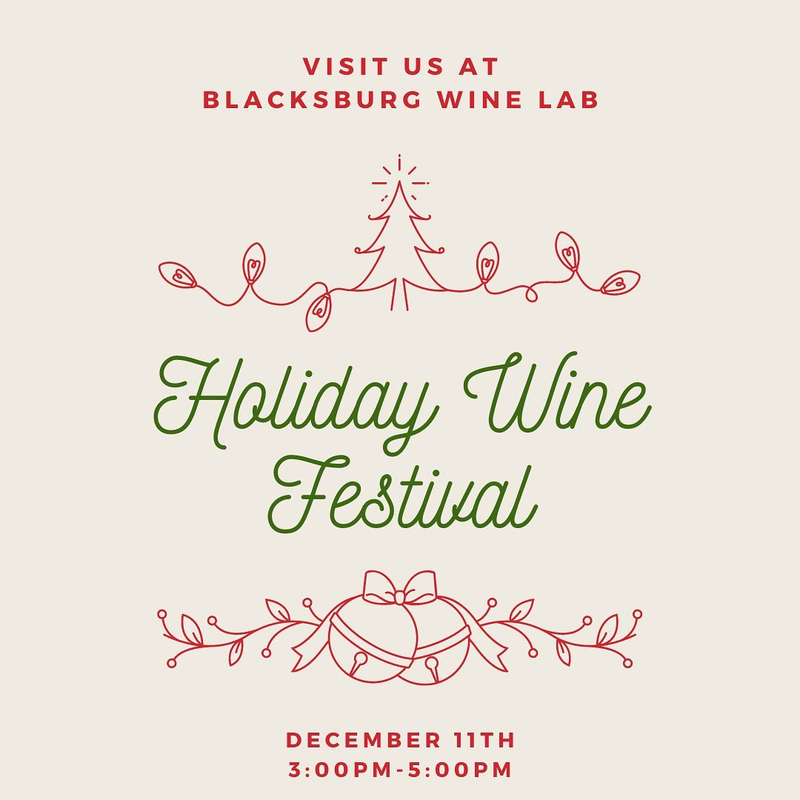 Blacksburg Wine Lab presents a Holiday Wine Festival and Tasting Event on Sunday, December 11, 2022.