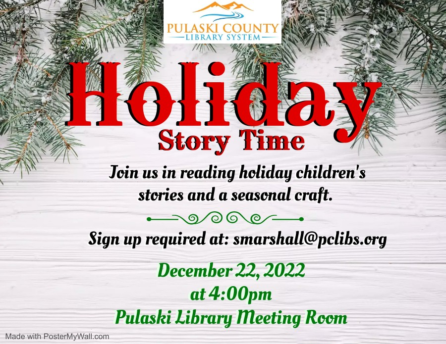 Pulaski County Library presents Holiday Story Time on Thursday, December 22, 2022.