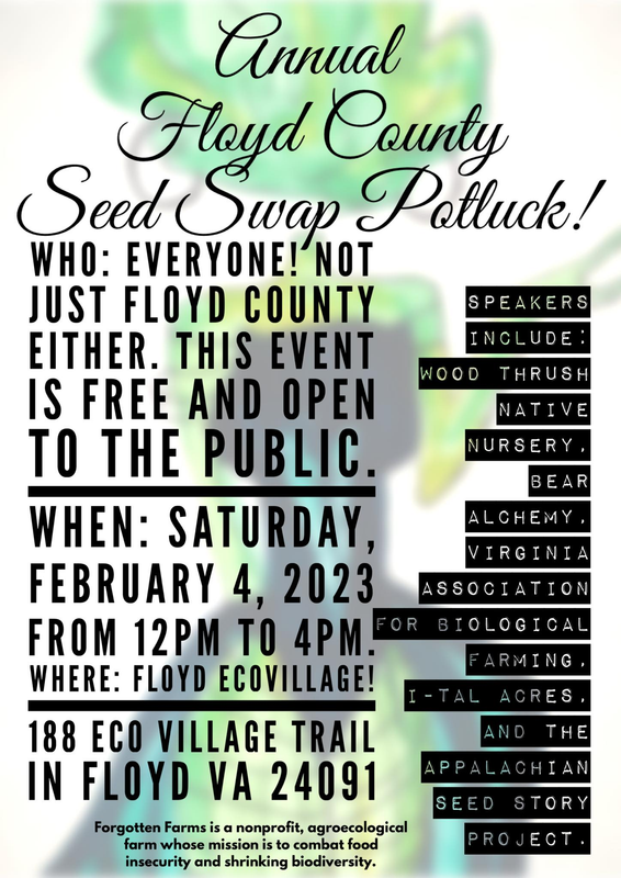 Floyd EcoVillage presents the Annual Floyd County Seed Swap Potluck on Saturday, February 4, 2023.