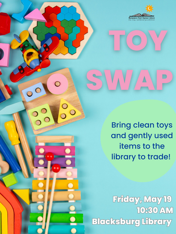 Blacksburg Library presents Toy Swap on Friday, May 19, 2023.