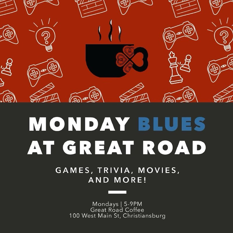 https://www.facebook.com/GreatRoadCoffee or call 540-394-7203.