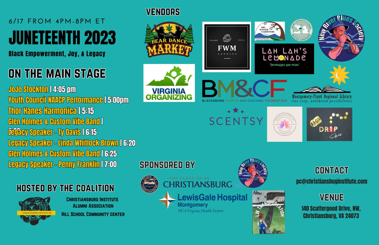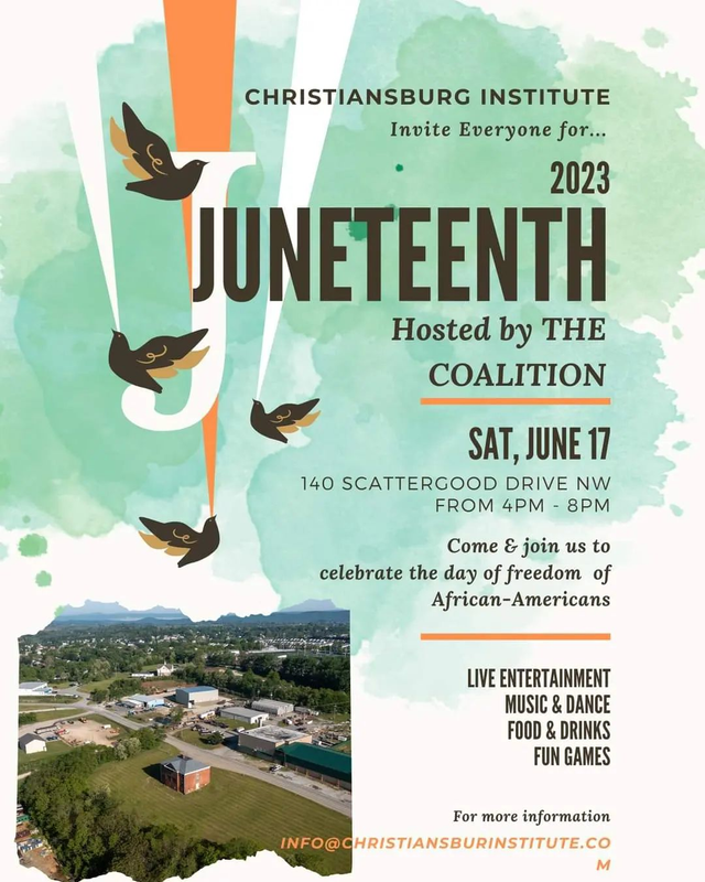 Christiansburg Institute presents the 2023 Juneteenth Celebration on Saturday, June 17, 2023.