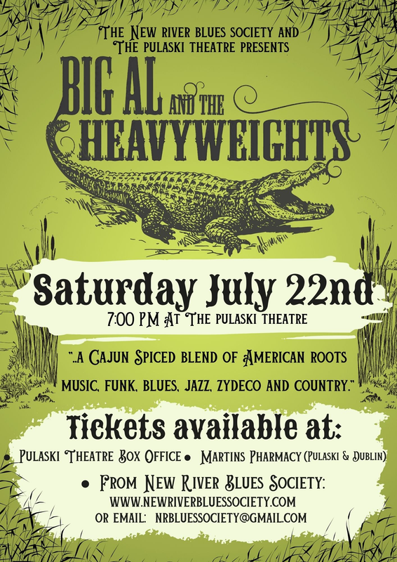 The New River Blues Society presents Big Al and the Heavyweights in concert on Saturday, July 22, 2023 at the Pulaski Theatre.